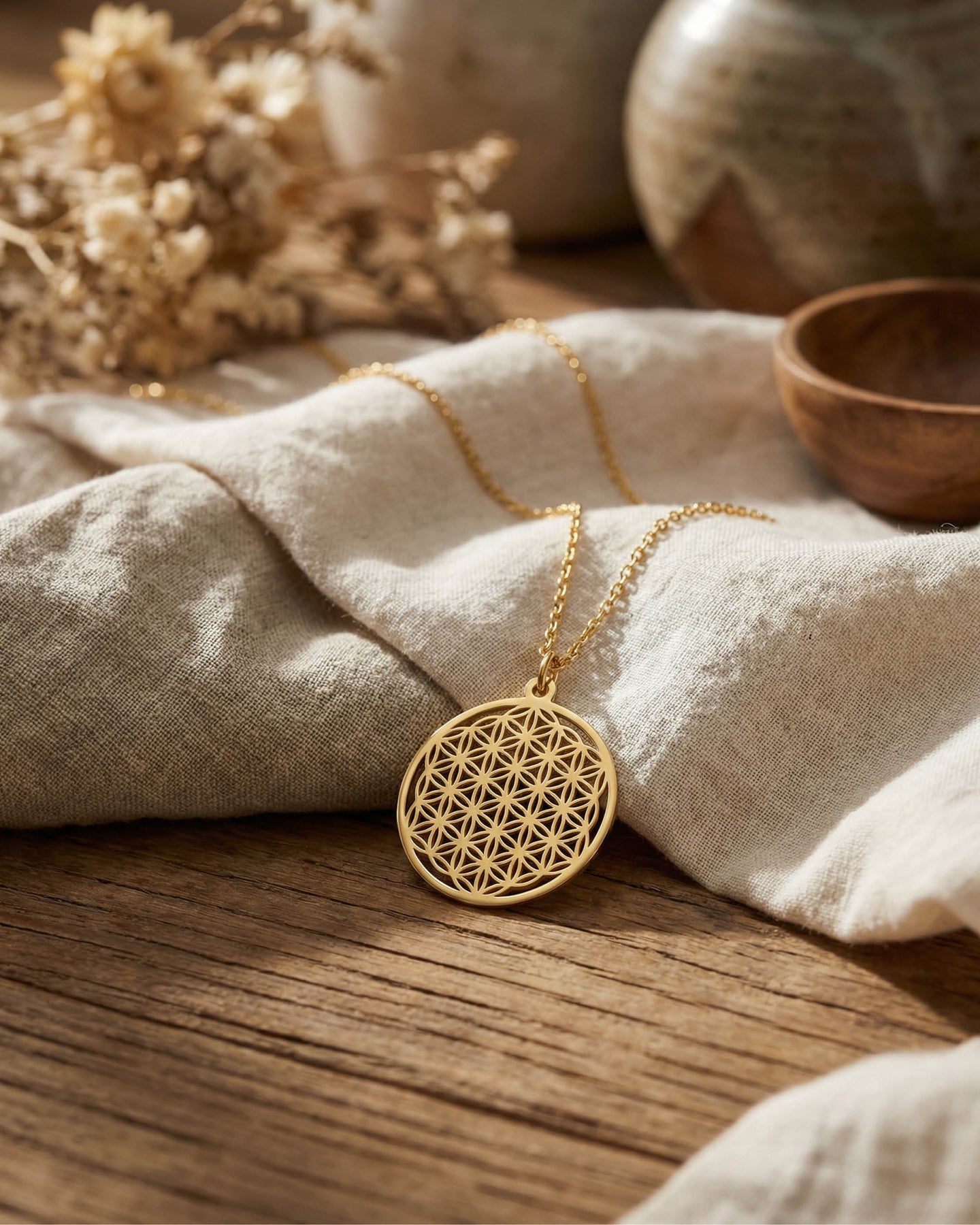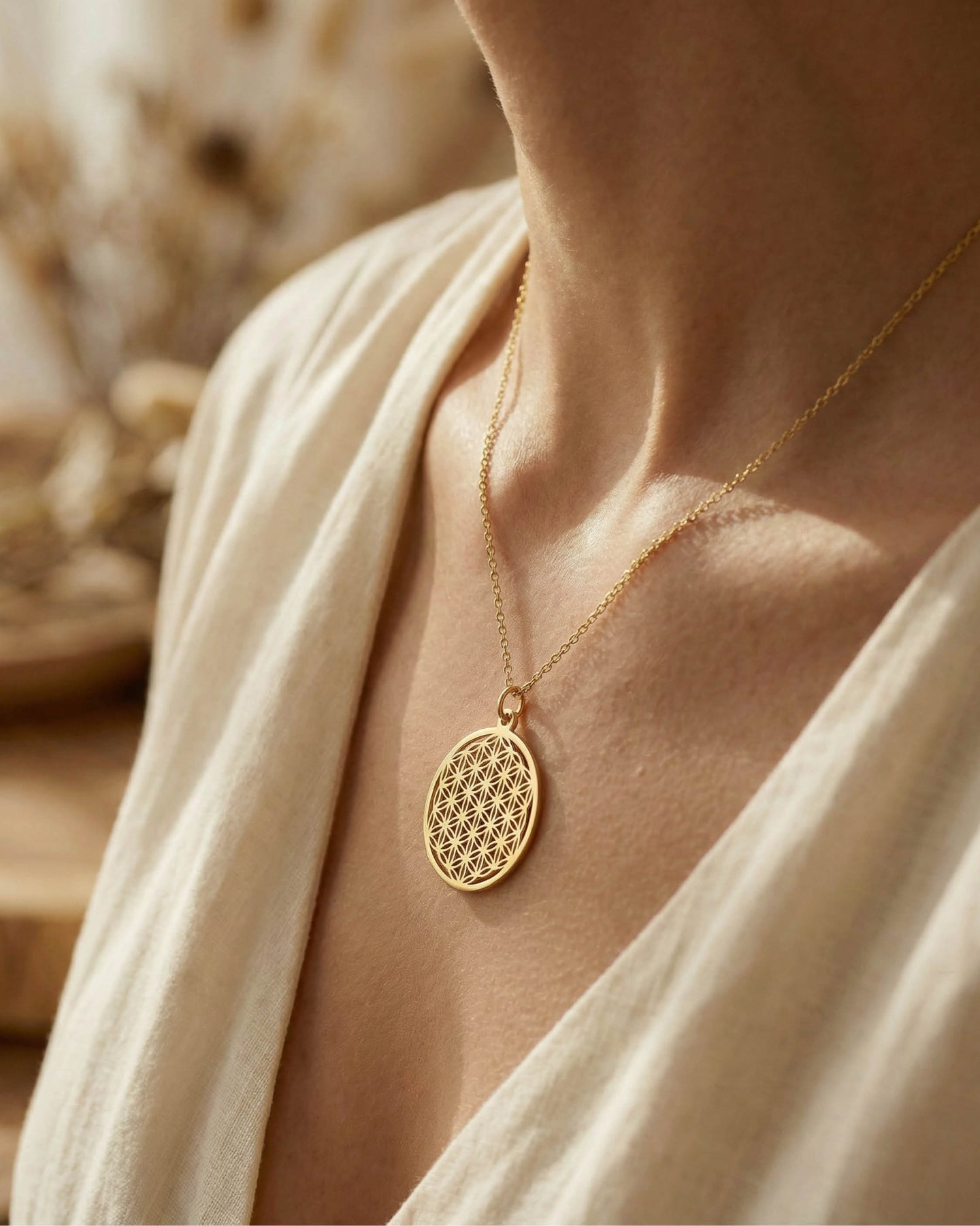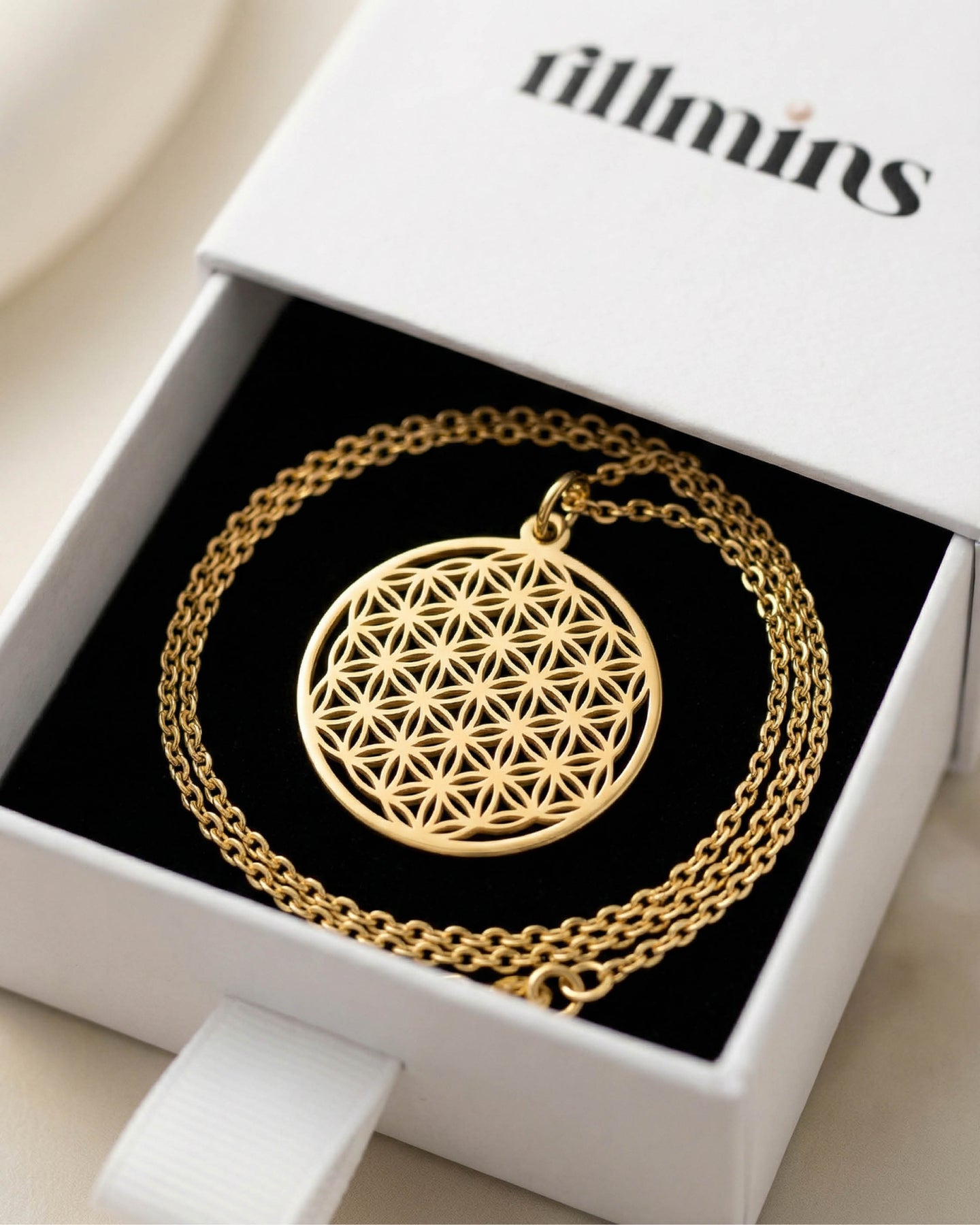 Vilomint Kolye, evrenin kusursuz döngüsünü ve yaşamın sürekliliğini simgeleyen çiçek-i hayat (Flower of Life) geometrisinden ilham alır. İncelikle işlenmiş formu, modern çizgilerle birleşerek zamansız ve anlamlı bir tasarım ortaya koyar. Her detayında denge, uyum ve zarafet hissi taşır.