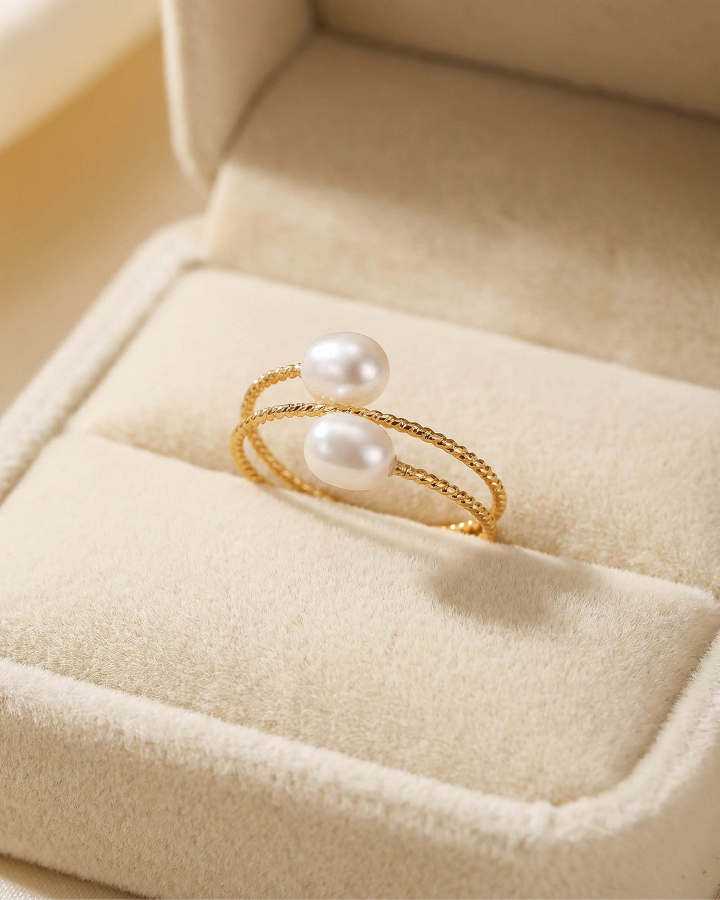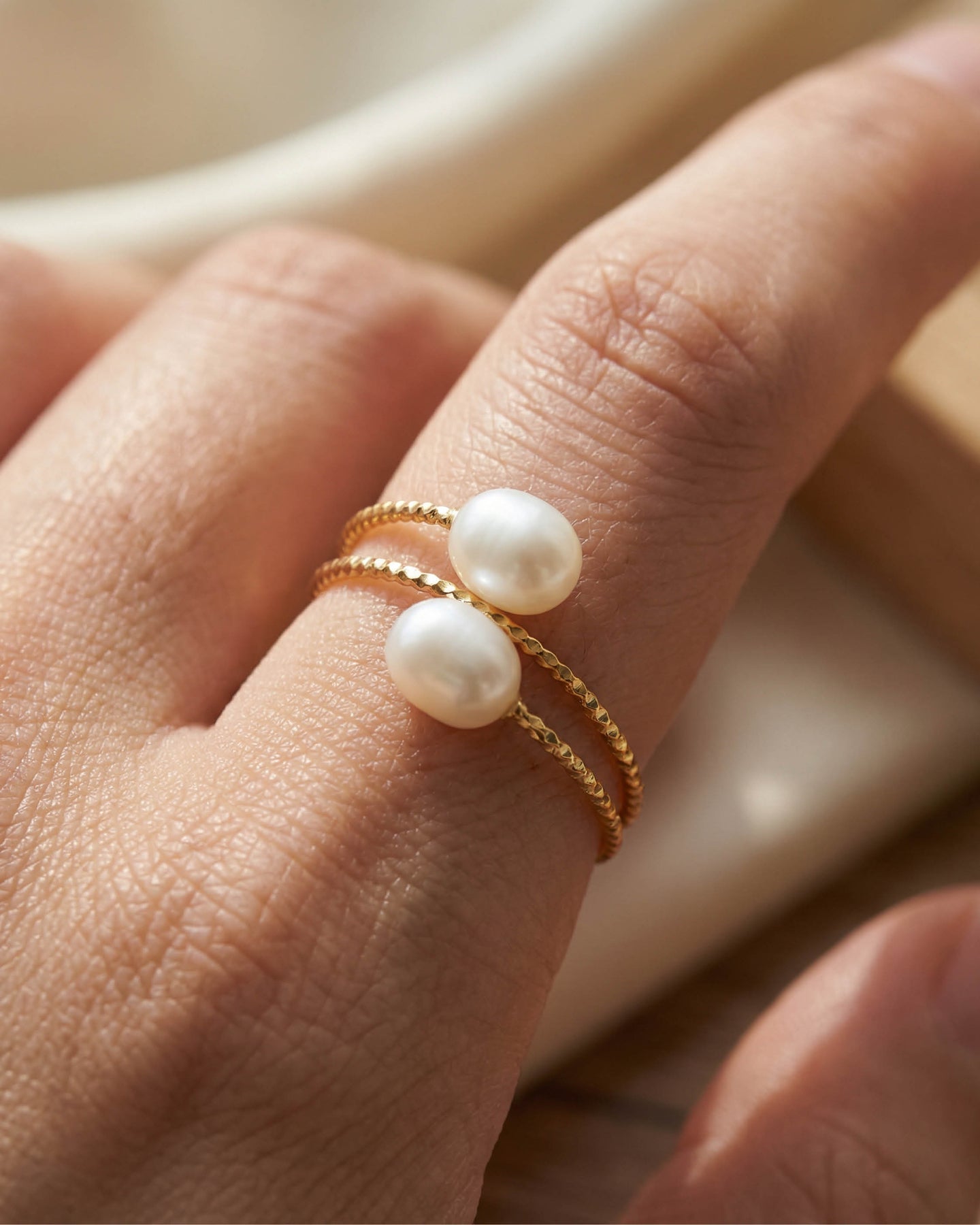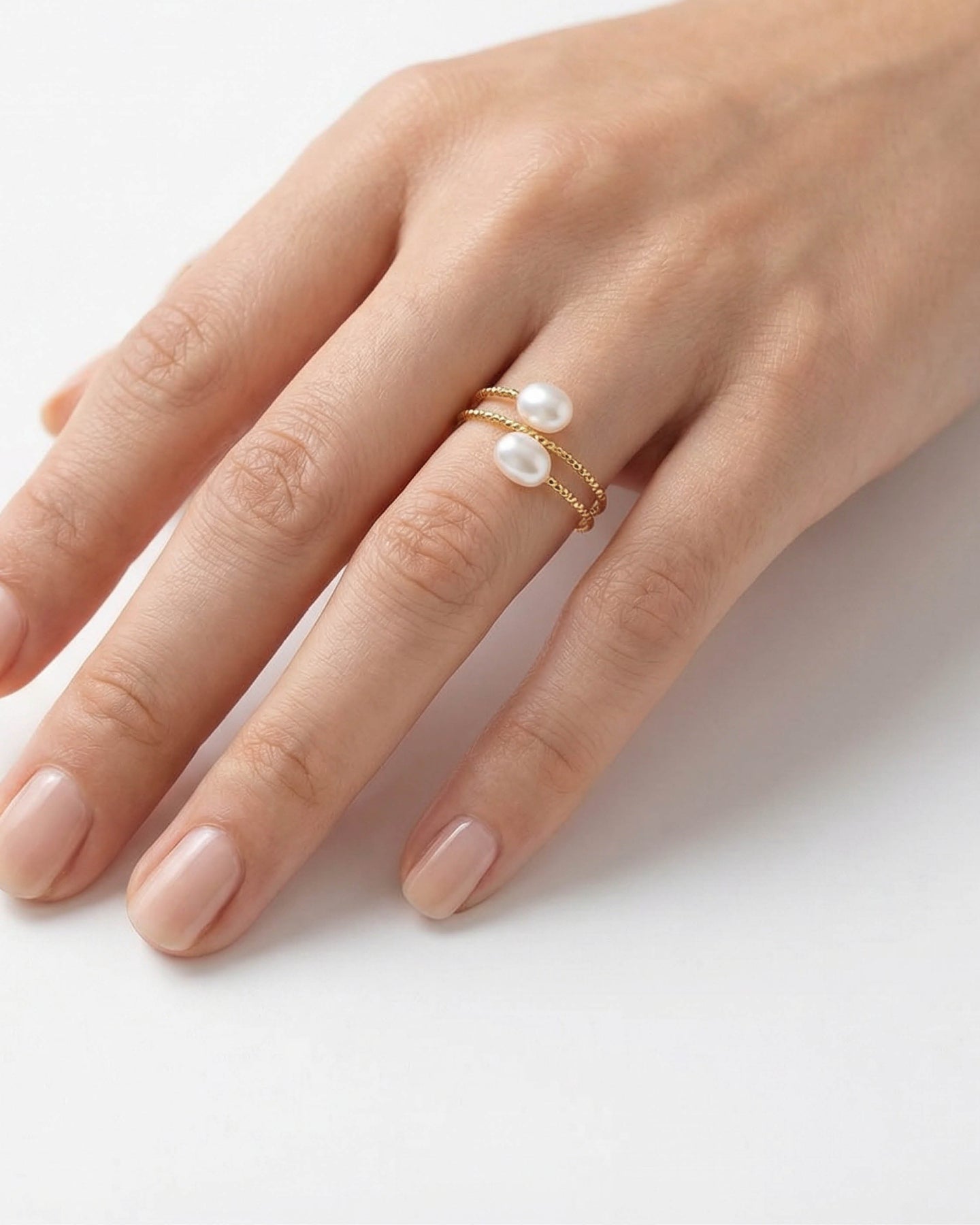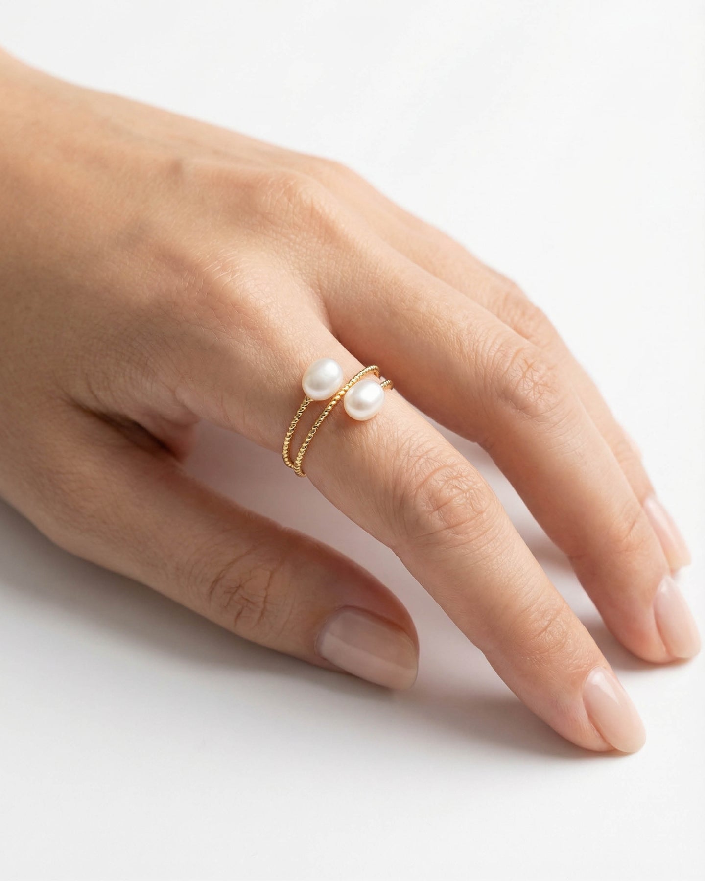 Luniva inci yüzük, sadeliğin zarafetle buluştuğu modern bir tasarımın ifadesidir.
