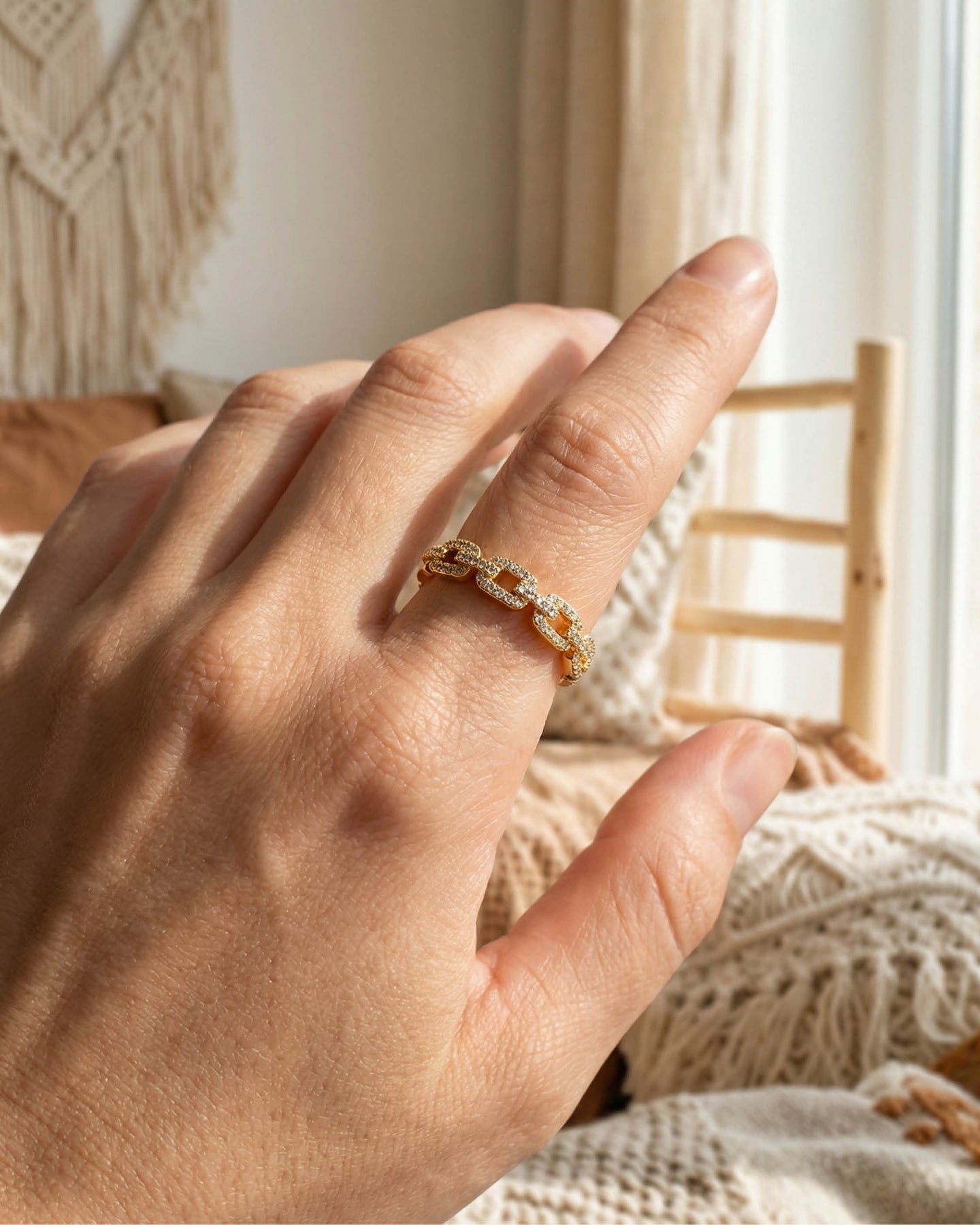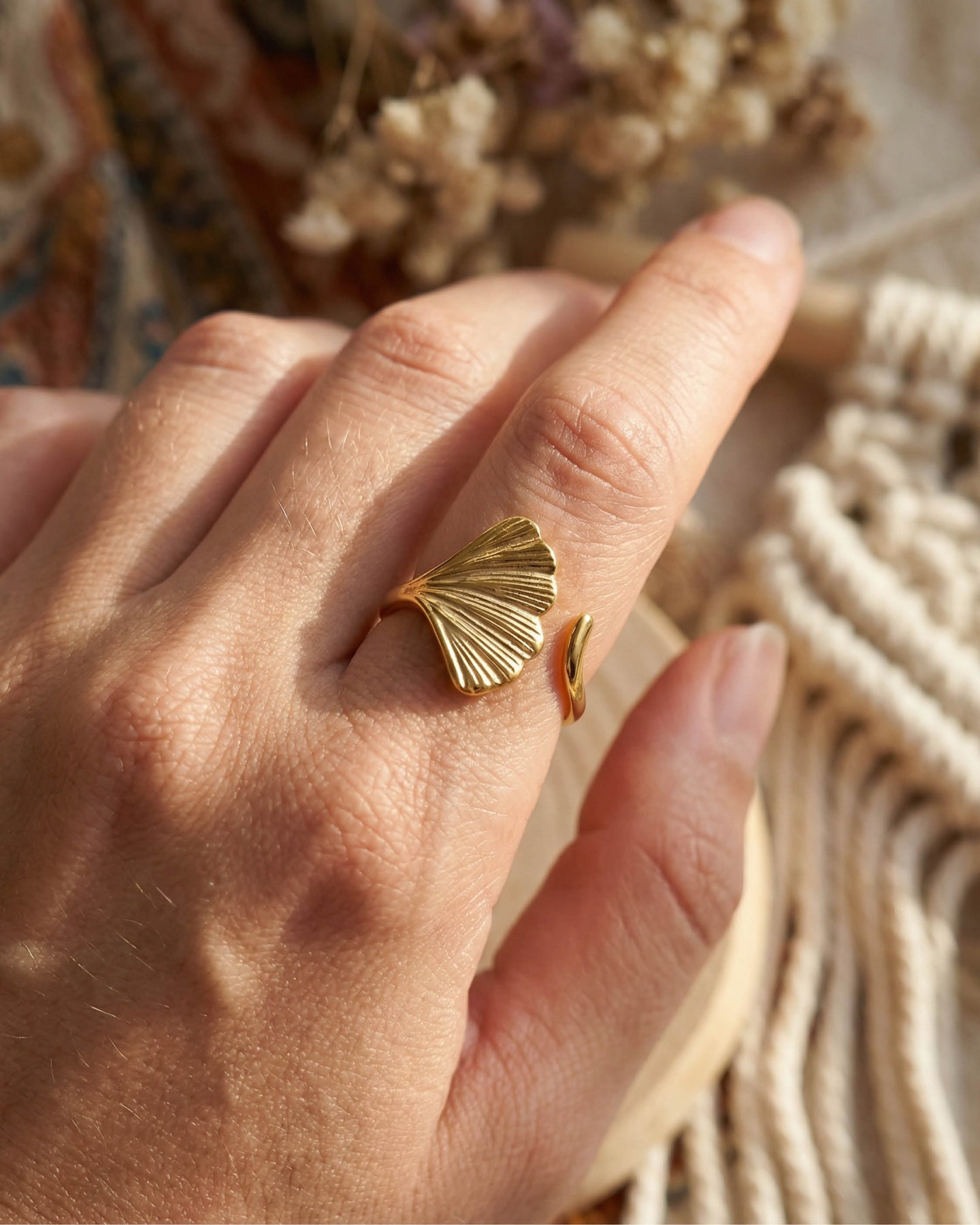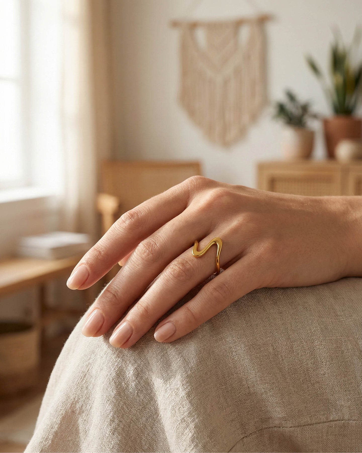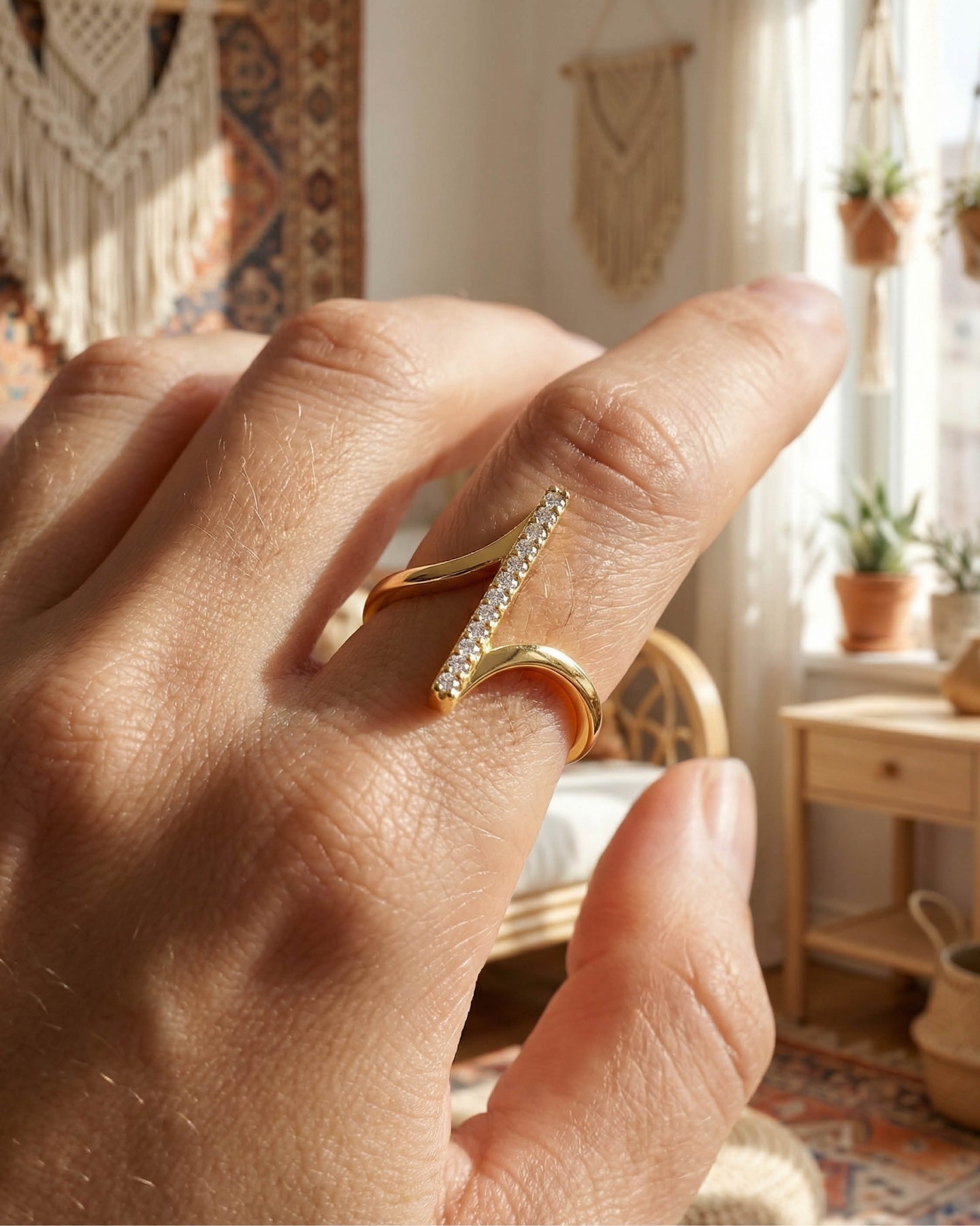 Açık uçlu formu sayesinde parmakla uyum içinde hareket eder, günlük kullanımda konfor sunar. Minimal ama dikkat çekici yapısı, hem boho hem de modern stillerle kusursuz bir uyum yakalar.