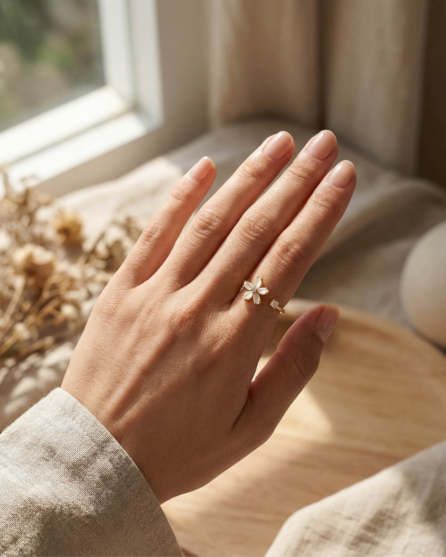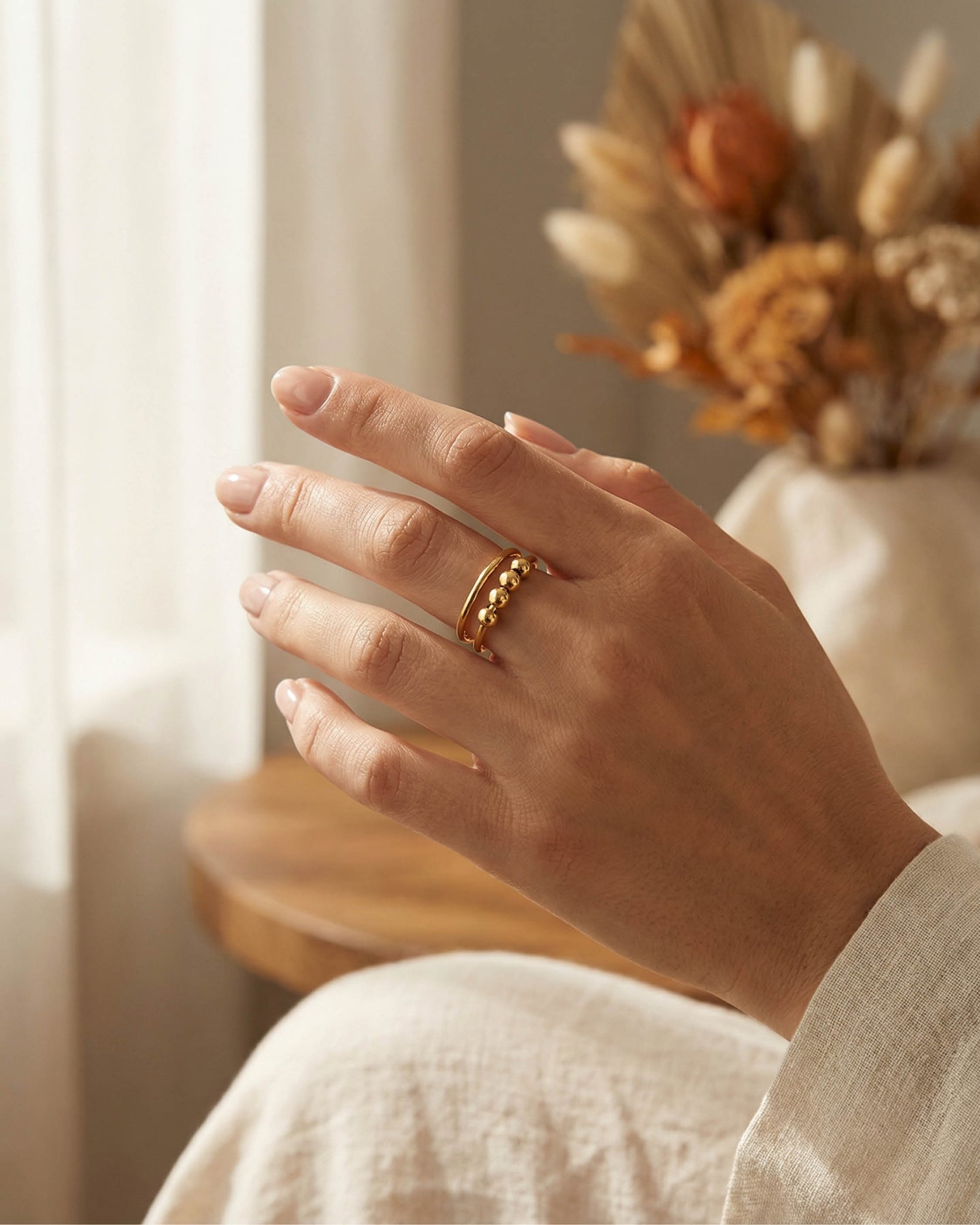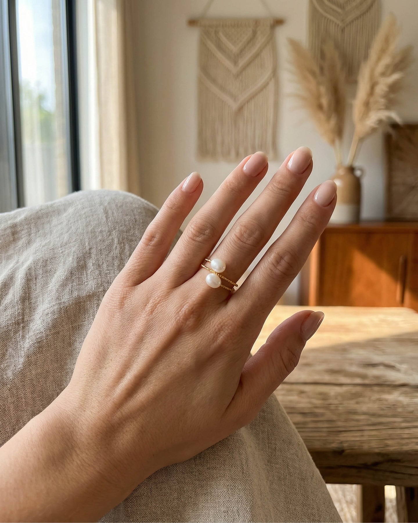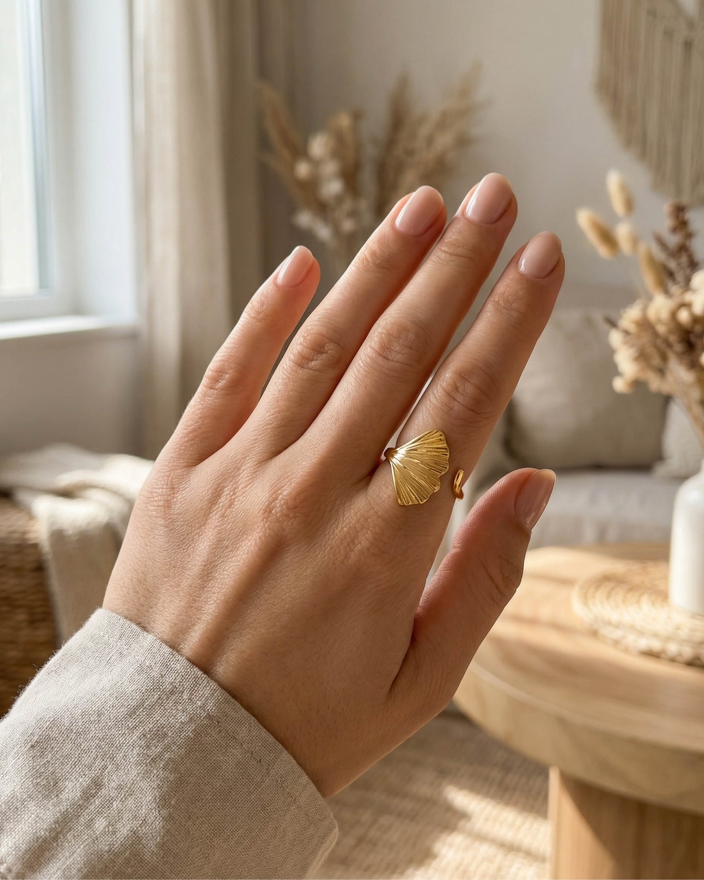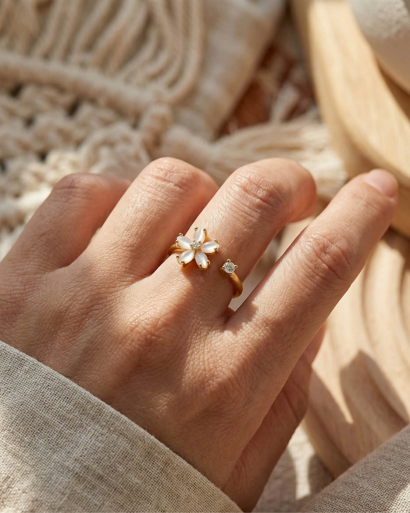 Açık uçlu formu sayesinde parmakla uyum içinde hareket eder, günlük kullanımda konfor sunar. Minimal ama dikkat çekici yapısı, hem boho hem de modern stillerle kusursuz bir uyum yakalar.