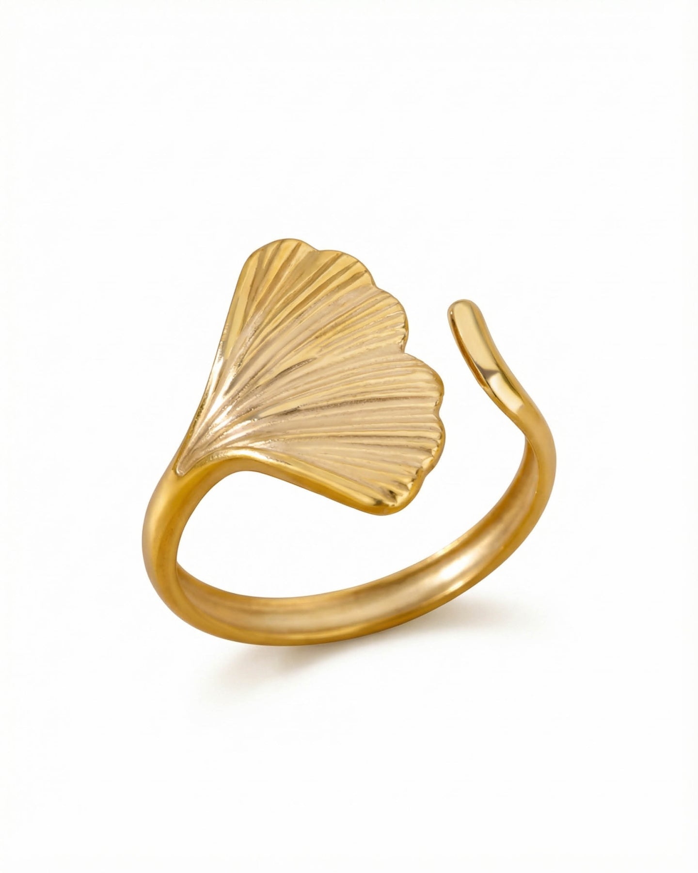 Ginkora Yüzük, doğanın zamansız zarafetinden ilham alan heykelsi bir tasarıma sahiptir. Yaprak formundaki akıcı çizgiler, yenilenmeyi ve içsel gücü simgelerken; 18K altın kaplamanın sıcak ışıltısı yüzüğe sofistike bir duruş kazandırır. Ayarlanabilir yapısı sayesinde parmakla kusursuz bir uyum yakalar ve konforu şıklıkla buluşturur. Minimal ama karakterli formuyla Ginkora, gündelik stilinize doğal bir zarafet, özel anlarınıza ise sakin bir ihtişam katar.