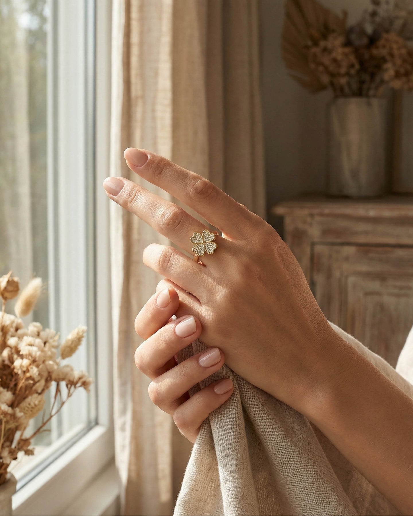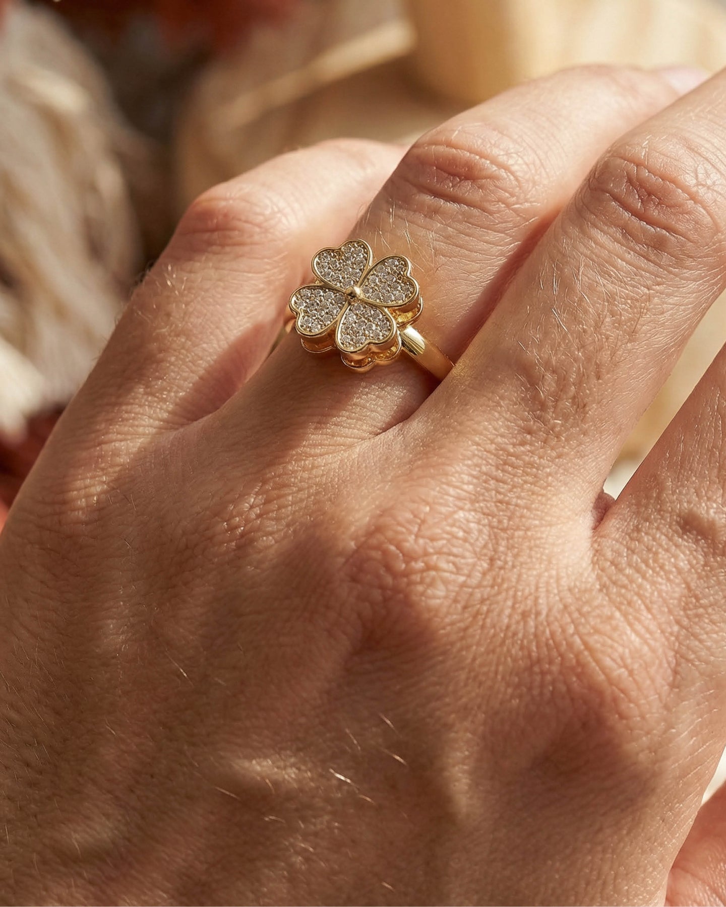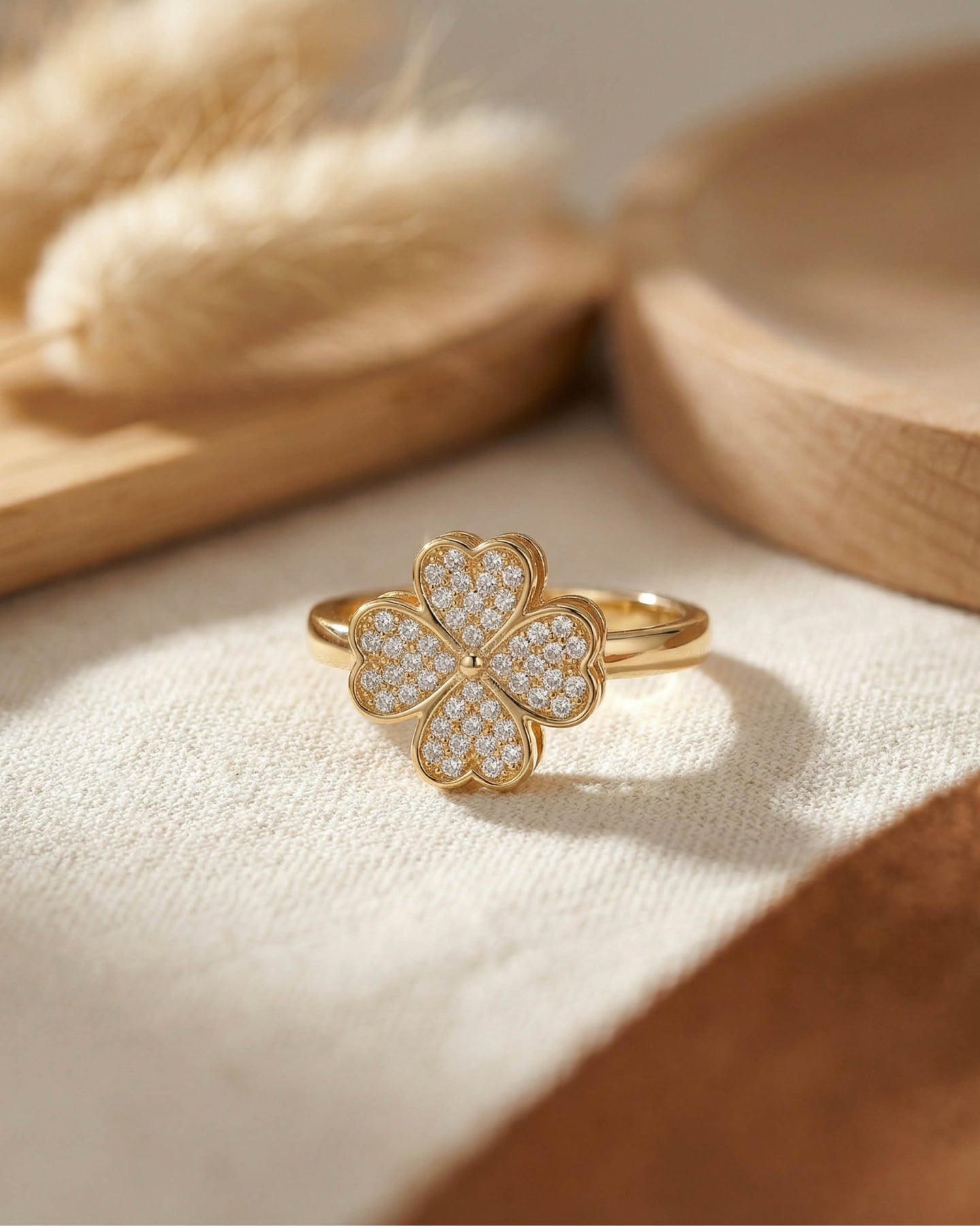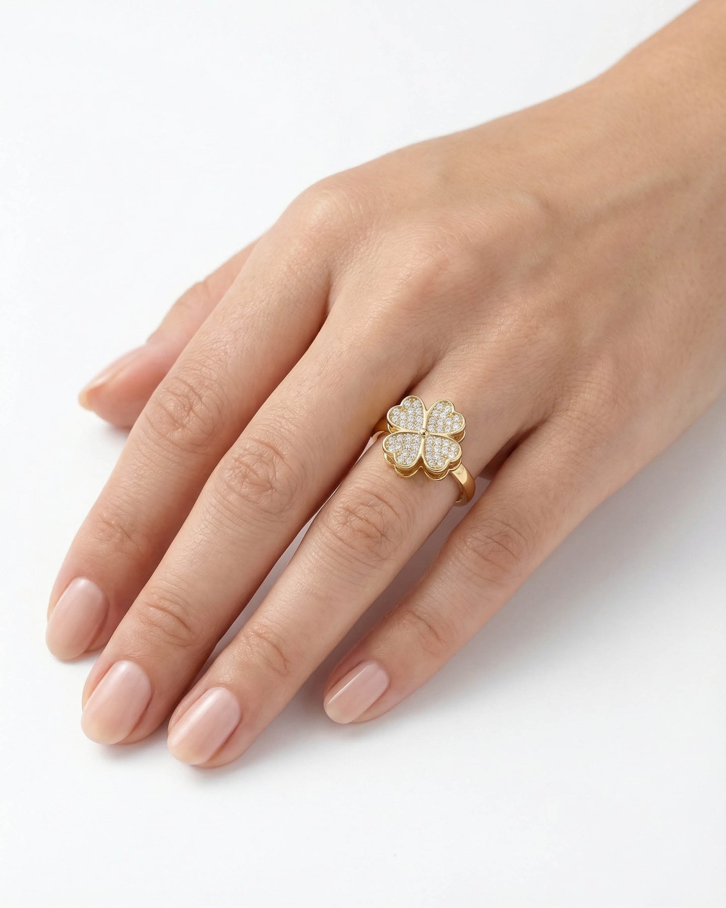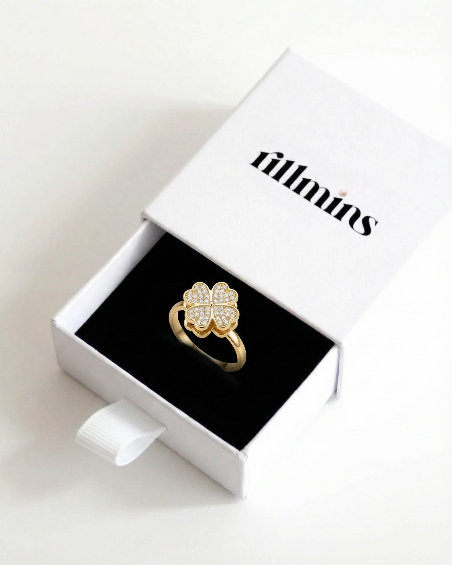 Clovins Yüzük, uç kısmında yer alan dönebilen 4 yapraklı yonca figürü ile pozitif enerjiyi ve hareketi bir araya getirir. Yoncanın her yaprağı; umut, sevgi, inanç ve şansı simgelerken, döner yapısı sayesinde modern ve interaktif bir deneyim sunar.